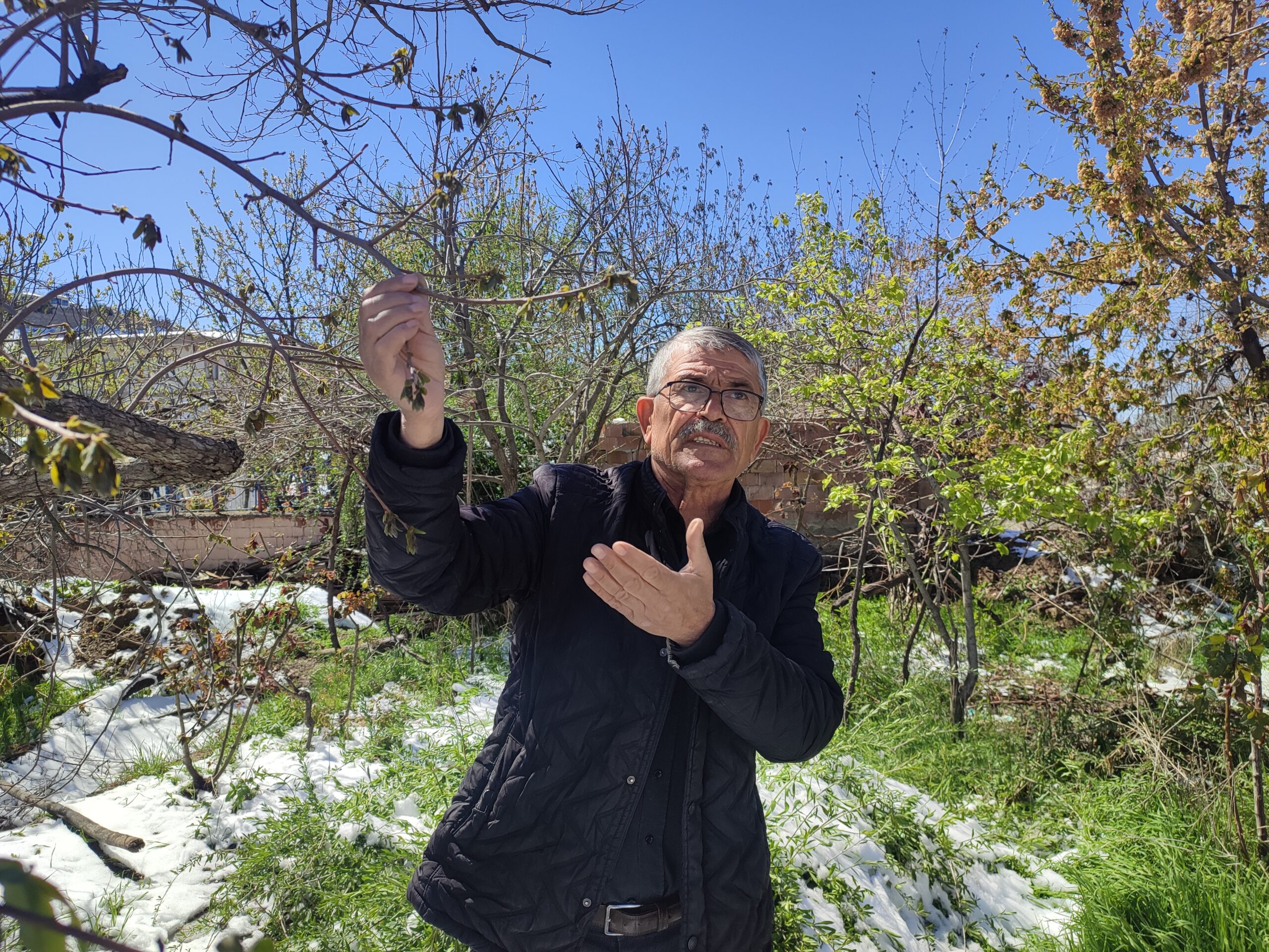 “Kirazın sapı bile haşlanmış gibi. Şu an hiçbir can yoktur. Bu da tamamen kirazın gittiğini gösteriyor. Belki ağaca bile zarar vermiş olabilir. Çünkü sabah 5 gibi eksi 9 gibi bir soğuk vardı. Bu yarı açmış bir ağaçları haşlamış durumda. Bunlar sıcağı gördüğünde dökülecek. Belki ağaçlar bile kuruyacak. Daha ılıman geçen, daha erken açan yerlerde ağaçlardan korkmaktayız. Çünkü tüm açtığı sürgünleri bile haşlamış ve güneşi görünce dökülecek. Bu da ağaçların besleyici yaprakları olmadıkları müddetçe, ağacın kurumasına neden olacak.