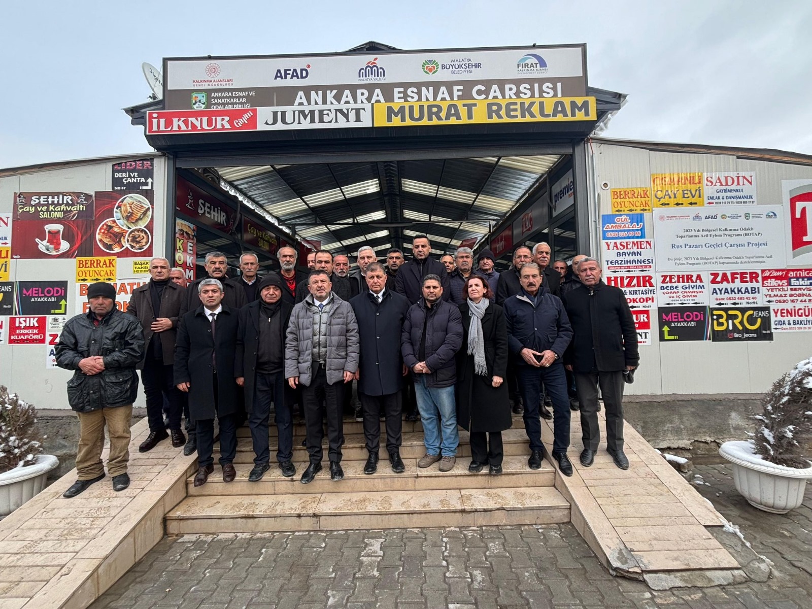 Ankara Esnaf Çarşısı’nda düzenlenen esnaf odaları geçici konteyner bürolarının açılış törenine CHP Malatya Milletvekili Veli Ağbaba, CHP Antalya Milletvekili Aliye Coşar, İzmir Büyükşehir Belediye Başkanı Cemil Tugay, Malatya Esnaf ve Sanatkarlar Odaları Birliği (MESOB) Başkanı Şevket Keskin, Çiğli Belediye Başkanı Onur Emrah Yıldız, Bergama Belediye Başkanı Tanju Çelik, Bayraklı Belediye Başkanı İrfan Önal ve kalabalık bir heyet ile birlikte Esnaf Odası Başkanları katıldı.