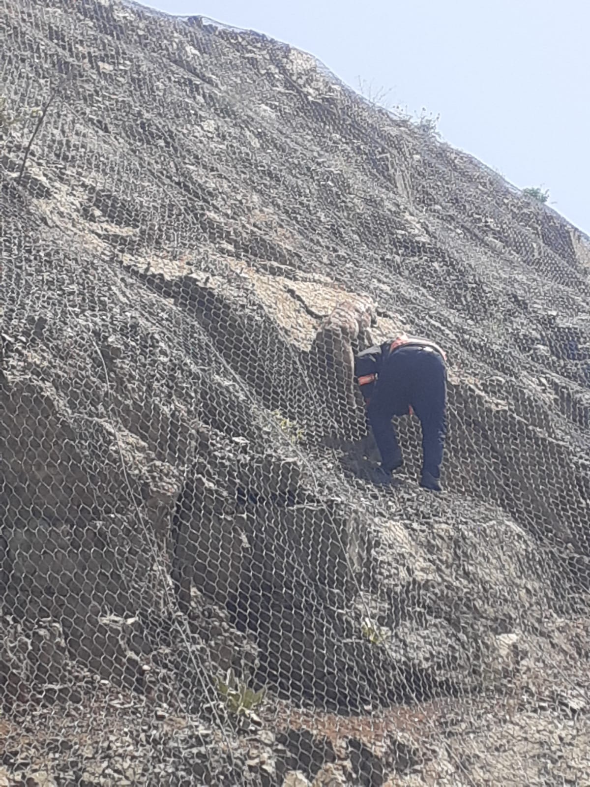 Malatya’nın Pütürge ilçesinde 2 dağ keçisi heyelan ve taş düşmemesi için yapılan tellere sıkıştı.