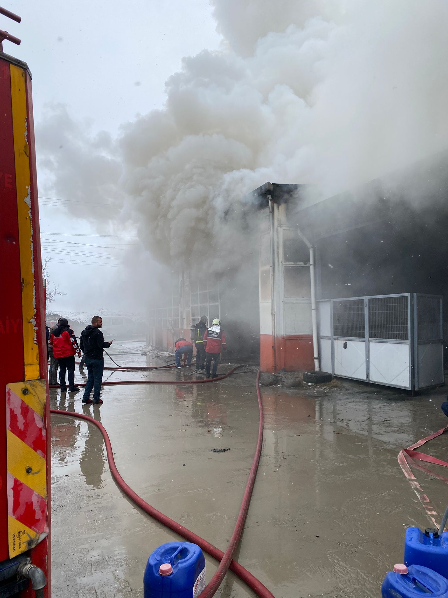 Özsan Sanayi Sitesi’nde saat 12.40 sıralarında başlayan yangına ihbar üzerine itfaiye ekipleri sevk edildi.